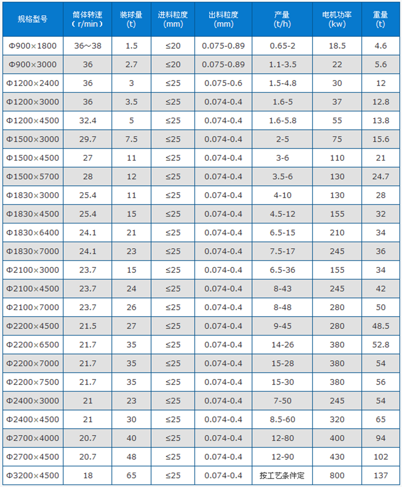超細球磨機技術參數
